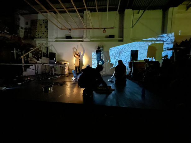 Experimental performance in which the different participants improvised by generating sounds with the various objects placed on the stage. These were connected to different contact microphones that recorded the sound, which in turn was altered live, creating an enveloping and strange atmosphere, a landscape of inorganic sounds.